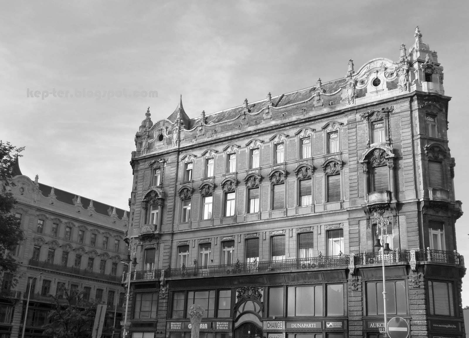 1901 körül, balra a királyi Bérpalota, jobbra a Párisi udvar helyén még elődje, a Brudern ház áll. (egykor.hu) |
